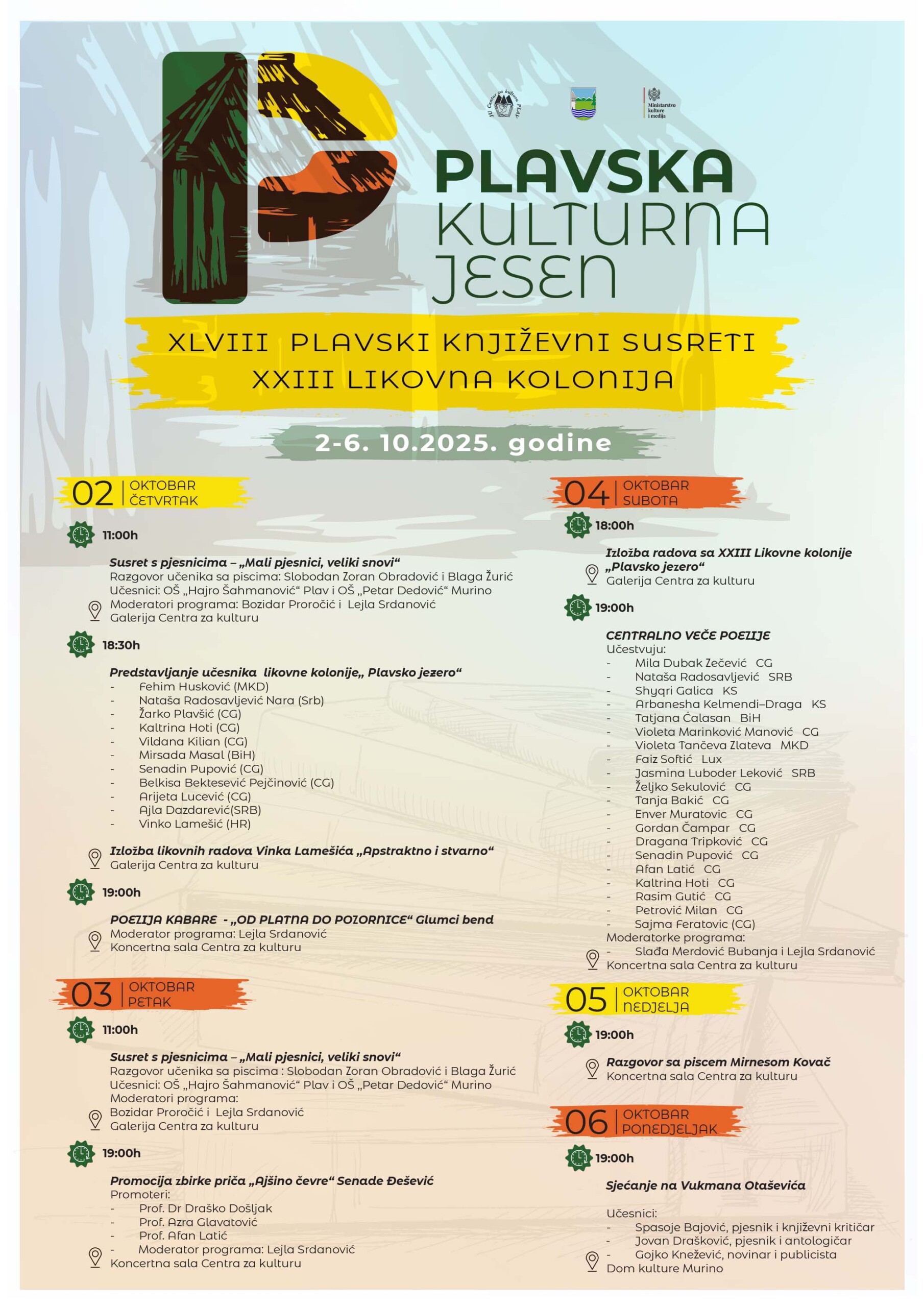 Za detaljne informacije o programu i učesnicima zapratite nas na društvenim mrežama: “Plavska kulturna jesen” na Instagram-u i Facebook-u.